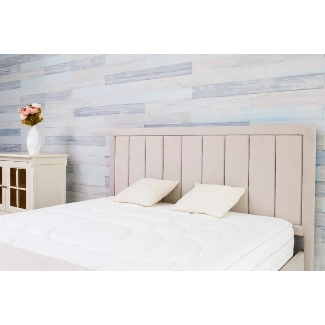 Кровать оснащена встроенным основанием для матраса — прямыми ламелями из березовой фанеры.