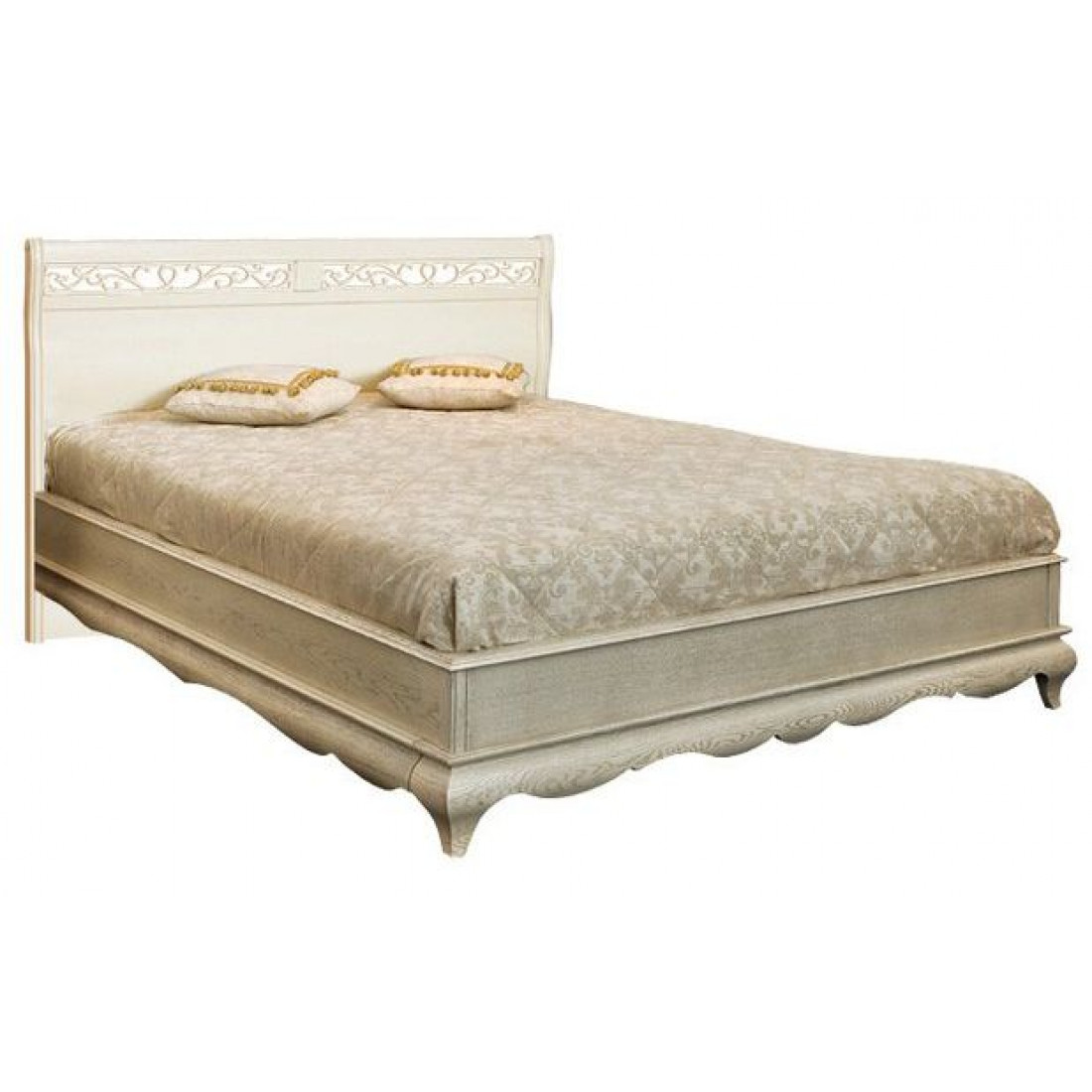 Классическая двуспальная кровать с высоким резным изголовьем и без изножья из коллекции мебели для спальни "Оскар". Дизайн модели отличается изогнутой формой спинки и изящной ажурной резьбой с растительным мотивом. Спальное место 1400х2000 . Выполнена из массива и шпона дуба, окрашена в оттенок "Белая эмаль с патиной".