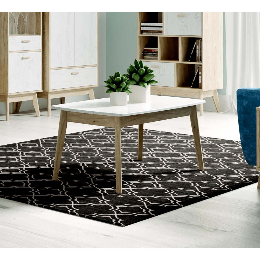 Ультратрендовая гостиная Калгари от Мебельград, выполненная в светлых тонах с элементами сдержанного стиля 60-х - высокие ножки, выраженная деревянная текстура натурального дуба, четкие формы. Вся мебель очень мобильная, компактная, вызывает чуство легкости и свободного пространства, при этом она функциональна.