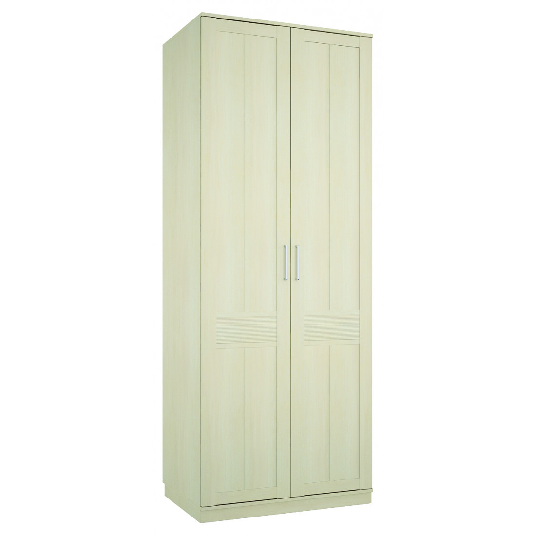 В отделении шкафа за дверями одна несъемная полка и штанга для одежды;