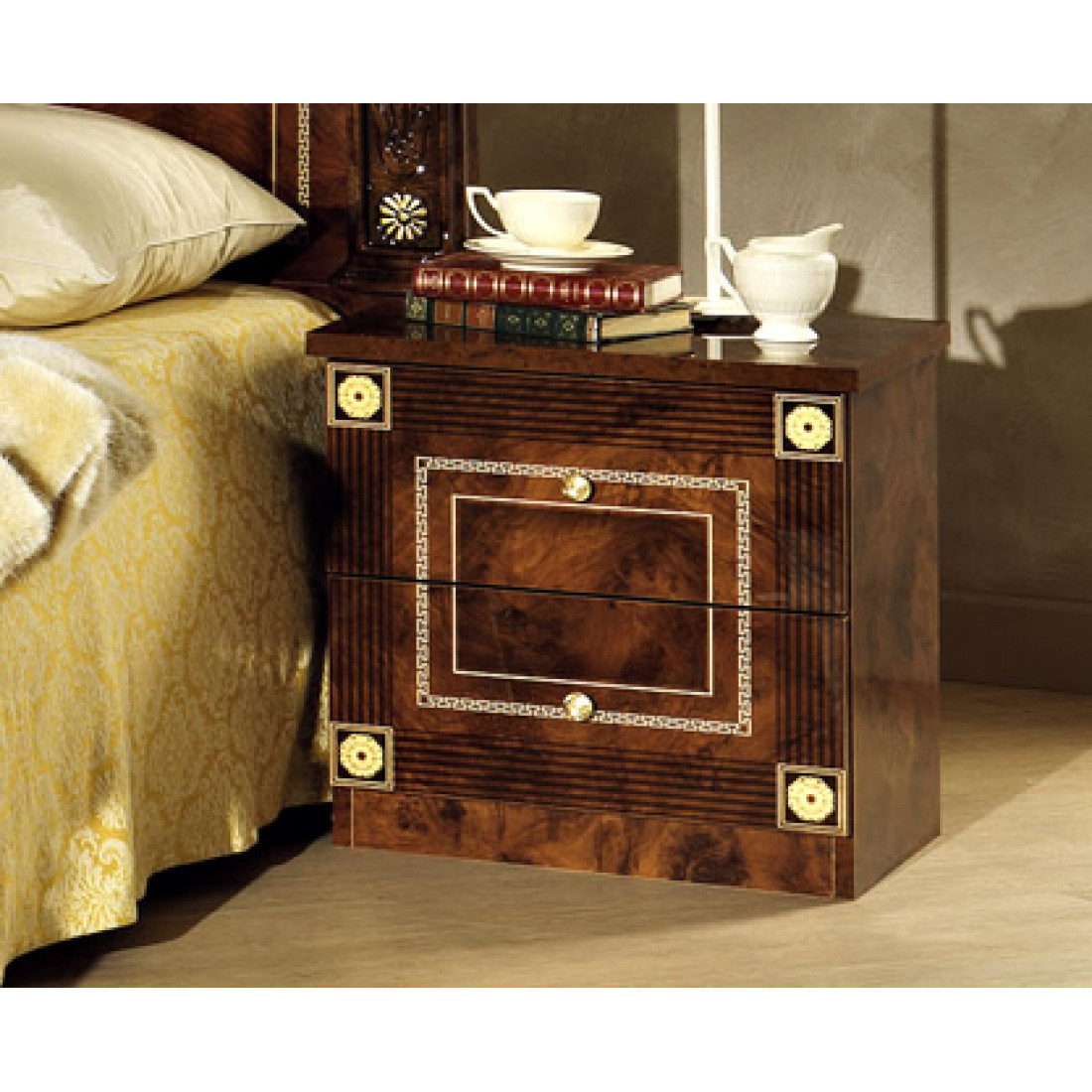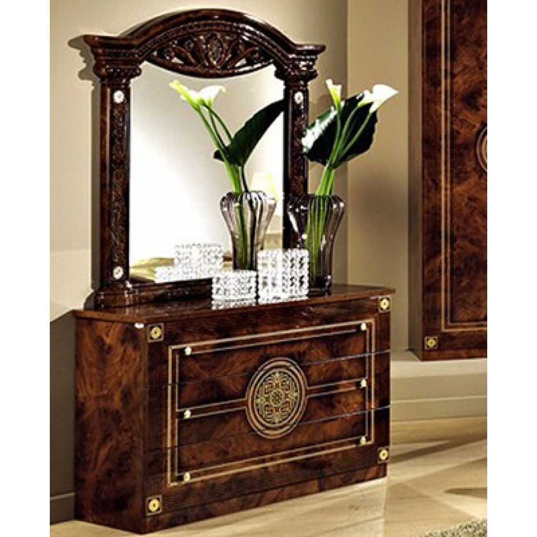 Спальня Рома (орех) от Российской фабрики «ДИА мебель» выполнена в строгом, классическом стиле. Ореховый цвет в сочетании с глянцевым покрытием придает элегантность. Такая спальня поможет Вам окунуться в атмосферу роскоши и комфорта. Безшумные и плавно закрывающиеся дверцы шкафа и комода помогут с легкостью забыть о шуме по утрам. Вся коллекция "Рома" предназначена только для истинных ценителей элегантного классического стиля.