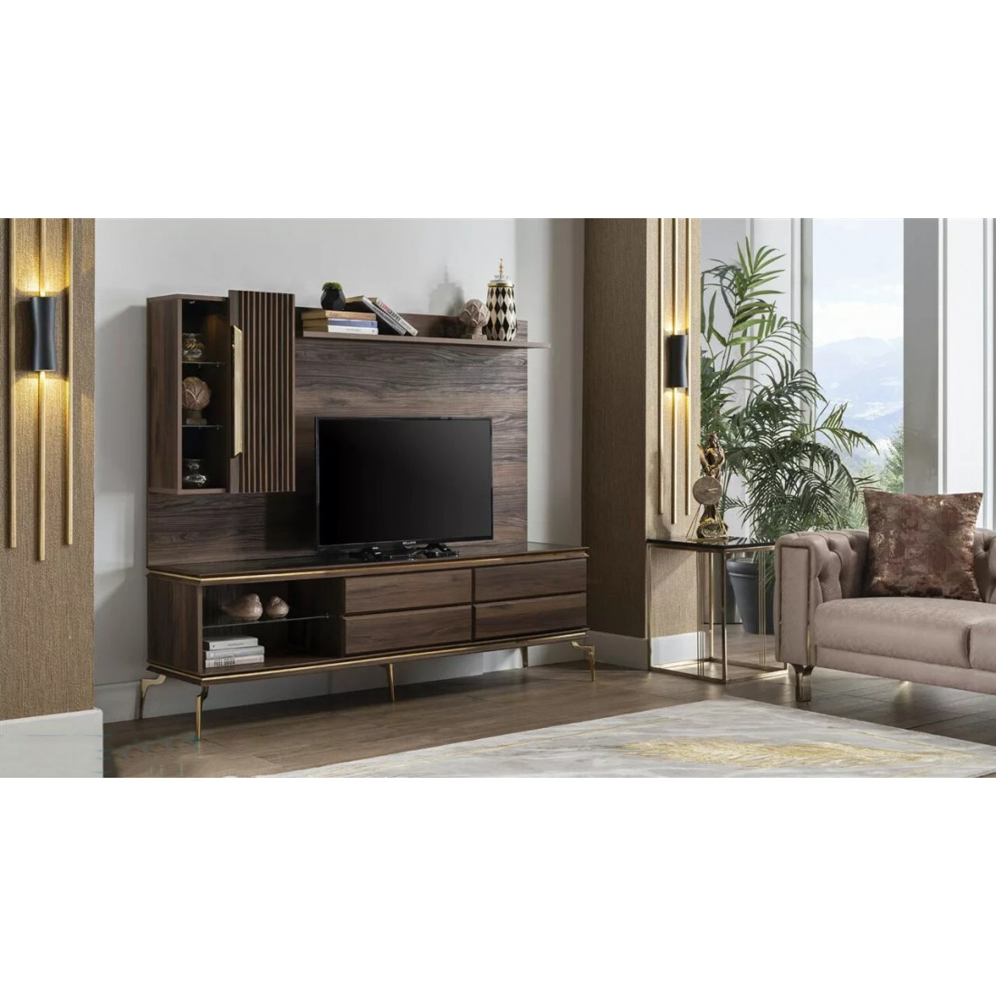 Многофункциональная стенка под TV "Монтего". Шикарная стенка турецкого производства. На нее можно поставить телевизор размером в 55 дюймов. Есть место для DVD плеера и игровой приставки. Все вещи будут на своих местах, что не может не радовать. Навесной шкафчик можно вешать с любой стороны.